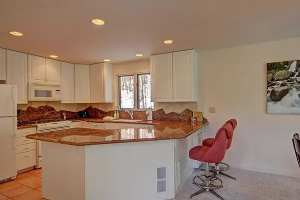 Inside, the home greets you with its warm and inviting ambiance. Huge picture windows bring the natural beauty of the surroundings inside, while a gas fireplace adds cozy charm. The fully equipped kitchen is ready for culinary adventures, and the children's bunk room is a delightful addition for the younger members of the family.