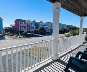 Wolfpack Waves is your perfect beach getaway—a spacious 4-bedroom, 3.5-bath second-row home designed for comfort, convenience, and unforgettable family memories. With a private pool and an inverted floor plan, the home makes it easy to relax and enjoy coastal living. Take a short stroll to the ocean via the beach access directly across the street, between 1105 & 1107, or spend your days lounging by the pool. Evenings are made for unwinding on the deck in rocking chairs while savoring sunsets and the gentle ocean breeze.