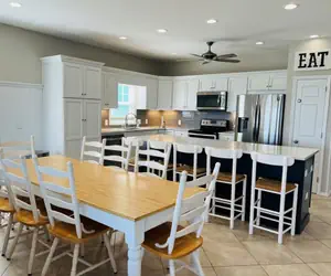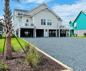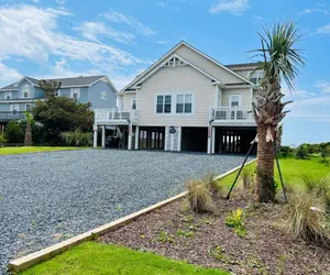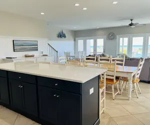 FINS to the Right is a spacious 2,600 sq. ft. duplex designed for family fun and relaxation. Guests have exclusive access to the large ocean-side pool shared with FINS to the Left. The home features bright, fresh rooms, including a master suite with a wall of windows opening to a private porch. The great room includes a game table, and there is a dedicated kids’ TV area. Amenities include 7 ceiling fans, 3 TVs with movie channels, WiFi, two covered ocean-side porches, two sundecks, and an additional sundeck near the beach access. Outside, enjoy rockers, a picnic table, charcoal and gas grills (guests provide fuel), and an enclosed hot/cold outdoor shower. Parking accommodates up to 7 vehicles.