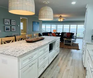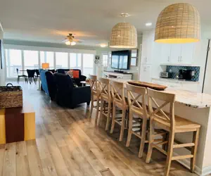 Beach Time is a bright and charming family-friendly home featuring a private pool and an open floor plan with a wall of windows that truly make you feel “on the beach.” Upstairs, a game table provides hours of fun, while the additional TV and sitting room downstairs offer plenty of space for everyone to relax. The home is thoughtfully equipped for your convenience, including a large outdoor shower.