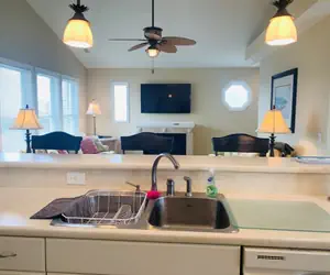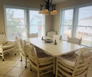 Relax on the screened porch or covered decks, grill up your favorite meals on the charcoal grill, or gather inside the living area featuring a 50-inch flat-screen TV. Each bedroom also includes its own TV for added convenience. After a day in the sand and surf, rinse off in the large outside shower—perfect for those “Sandy Toes”!