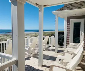 The spacious living room offers a 46-inch TV with surround sound and Merge-TV with streaming capabilities, perfect for relaxing after a day at the beach. The open, well-equipped kitchen features Corian countertops and provides ample space for meal preparation and gathering. Enjoy panoramic ocean views from the first floor, bringing the beauty of the coast indoors.