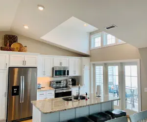 The well-appointed kitchen features granite countertops and stainless steel appliances, ideal for preparing meals for family and friends. All bedrooms are designed for comfort, each offering a private bathroom and its own TV. Two oceanside decks provide sweeping views of the Atlantic, while a covered streetside deck offers additional shaded outdoor space. WiFi is available throughout the home.