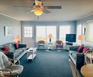Westside is a stunning oceanfront duplex that lets you wake up to the soothing sound of waves and enjoy breathtaking views from multiple decks. The home features both upper and lower front decks, plus a large shared deck on the first dune—perfect for morning coffee, sunset cocktails, or simply taking in the beauty of the ocean. Inside, a newly updated kitchen, ceiling fans throughout, and high-speed internet provide comfort and convenience, while thoughtful outdoor amenities like an enclosed hot/cold shower and a grill make beach life effortless.