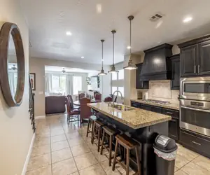 Indulge in the luxury of Kickin' It At Karisma 2, a highly-rated 5-star villa spanning 2,692 sq feet with 5 bedrooms and 3.5 bathrooms, featuring a private hot tub. Our home is adorned with top-notch upgrades, boasting flat-screen HDTVs, a gourmet kitchen with granite countertops, and stainless steel appliances. The spacious floor plan ensures quiet and private bedrooms, offering a serene retreat. Whether you seek relaxation or immersion in the surrounding landscapes, our contemporary-style bedrooms, partially covered outdoor patio, and family/recreation rooms provide comfortable spaces for both.