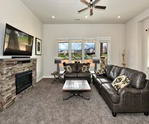 Stay On Course is a charming 1,874 sq ft, 3 bed, 2 bath villa situated along the 18th hole of The Ledges private golf course. Enjoy al fresco dining on the patio with majestic views of the surrounding red and white sandstone mountains or unwind by the private fire pit. Access high-speed (5G) Internet service or indulge in entertainment with flat-screen TVs in all 3 private bedrooms – your favorite sports channels included!