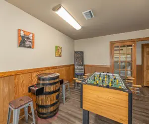 For those who love a bit of adventure, our game area is a must-visit, featuring a pool table, multi-game arcade, air hockey, and foosball. After a day of fun, unwind in the private hot tub or fire up the gas grill for a delicious BBQ on the deck. Our pet-friendly policy ensures that no family member is left behind, and with amenities like free WiFi, air conditioning, and cable TV, you'll feel right at home.