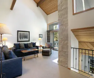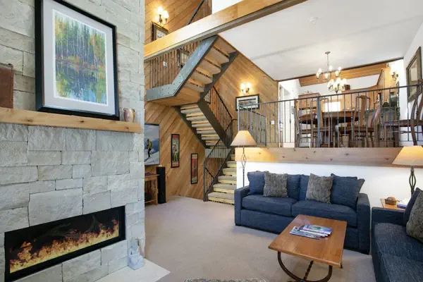 Located behind the gates of Beaver Creek in the prestigious Ridgepoint community, 188 is your perfect home away from home. This grand 5 level 3 bedroom, 3 full bath townhome features an extra sleeping loft and a nicely updated kitchen. The master bedroom and en-suite master bathroom are on the private ground level along with the entryway and mud room. The sunny guest bedrooms and 2nd bathroom are on the second level a few steps away from the ground floor. Up on the third level is the spacious living room with 25' vaulted ceilings and an elegant floor-to-ceiling stone-wrapped gas fireplace. There is a small private patio just off the living room too. The comfy couches are a great spot to relax after a long day of hiking or skiing and are positioned nicely to watch the giant flat screen TV mounted on the wall.
