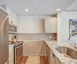 The master bedroom has a King Bed and en suite bathroom. There is also a Queen Murphy Bed in the Master Bedroom. There is a flat screen TV in this bedroom. The second bedroom is great for kids. There is a Bunk Bed with a Queen Bed on the bottom and a Full Bed on the top. There is a flat screen TV in this bedroom as well. It is a short walk to the American Eagle and American Flyer chairlifts. This is also a great location for beginners and first timers. The bus stop to the "bunny" slopes in West Village and the Copper Ski and Ride School is right out front. Passage Point has garage parking for 1 vehicle. Additional vehicles can park in the North Alpine Lot at the entrance of Copper Mountain for an additional fee during the winter, summer is free. There's an exercise room, 3 awesome outdoor hot tubs, a shared laundry room, and children's play area. Garage height 7'10"