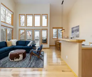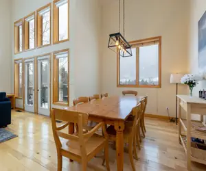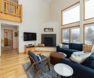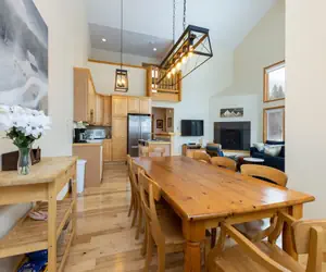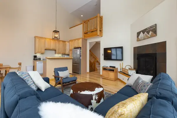 This 3 story townhome is a beautiful home that is centrally located and features soaring ceilings, an abundance of windows, an open layout, and a large living room to accommodate all your family and friends. Make yourself at home in the spacious living room in front of your roaring gas fireplace, or cuddle up and watch a movie on the 46 inch flat screen TV. The well appointed kitchen is perfect for entertaining with the open floor plan. You will love the smell of the pine board floors adorning the entire living area. Cook all of your meals at home and serve your family of 8 at the dining room table. There is a propane grill on the balcony and a washer and dryer in the unit for your convenience.