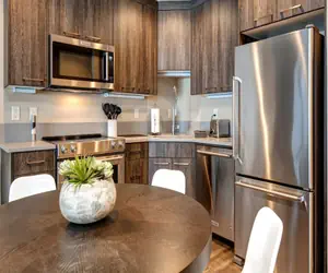 The spacious kitchen is equipped with stainless steel appliances and ample storage space. The cozy eat-in area becomes the central gathering point for your group.