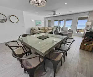 This 2-story gulf front townhome provides plenty of space for the family. The 1st floor offers an open living room with sleeper sofa, kitchen, dining area and half bath. The living room opens to the patio, where if you grab a cup of coffee, you can enjoy the morning waves as they crash onto the shore. Traveling to the 2nd floor you will find a King master with a private patio and bathroom with double vanity and a walk-in shower. Across the hall is the guest bedroom with a Queen-sized bed and Twin over Full Bunk with a private bath with shower/tub combo. A perfect place for those extra family members or friends.