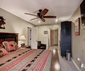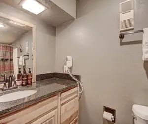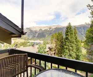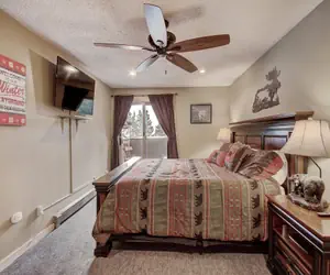 This is lock off unit of a privately owned condo. This fantastic and spacious top floor hotel room sleeps 2 people. This hotel room is also pet friendly. It is easy to catch the first chair in this ski-in/ski-out hotel room! Ski down to the base of the American Eagle Lift or the Green Acres learning area. There is a king size bed and a flat screen TV. The bathroom features a shower/tub combination with a curved shower curtain rod, and there is a separate sink area for getting ready in the morning. Enjoy stunning views of the Ten Mile Range and the Sky Chutes from your private balcony.