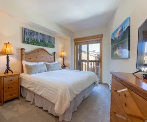 The primary bedroom features a king size bed, a flat screen TV, and a private balcony entrance with breathtaking views. The en suite bathroom features a jetted tub/shower combination, double sinks, and a private water closet. The second primary bedroom features a queen size bed, a flat screen TV and great views of the Gore Range. The en suite bathroom features double sinks and a shower/tub combination. The third bedroom features a double bunk bed with singe trundle that sleeps 5! This room also has a flat screen TV and a private balcony entrance with stunning views of the mountains.