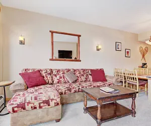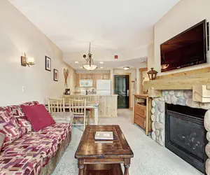 • Enjoy everything that Copper Mountain has to offer in this conveniently located condo. The private balcony overlooks the ice skating pond and has great views of the Ten Mile Mountain Range. Relax in the comfortable living room. Enjoy the gas fireplace and 42 inch flat screen TV. There is a Queen Sleeper Sofa. The well equipped kitchen is perfect for cooking all of your meals at home. The unique, wooden dining room table has seating for 4 people. Take a break from cooking and walk to one of the many great restaurants in Center Village.