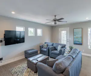 18th Fairway to Heaven is an expansive 2,692 sq. ft., 4-bedroom, 3.5-bathroom luxury villa thoughtfully furnished with all the upgrades you could desire, including flat-screen HDTVs, granite countertops, and stainless steel appliances. The floor plan is spacious, offering quiet and private bedrooms. Whether you seek relaxation or wish to immerse yourself in the surrounding landscapes, find comfort in the contemporary-style bedrooms, the partially covered outdoor patio, or spend quality time with family and friends in one of the two family/recreation rooms.