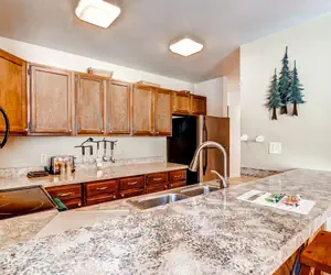 This one-bedroom condo is located at the Flying Dutchman Condominiums in West Keystone, just a short drive to the ski lifts via the free resort shuttle route. With a queen bed in the main bedroom and a queen sofa bed in the main living area, this condo sleeps up to 4 people. Modern amenities such as flat screen TVs, DVD player, granite counter tops and stainless steel appliances make this the perfect mountain getaway! The open concept living area features a gas fireplace and opens to the newly updated fully equipped kitchen and dining area. Common area amenities include a laundry facility, an outdoor pool heated year-round, and indoor hot tub.