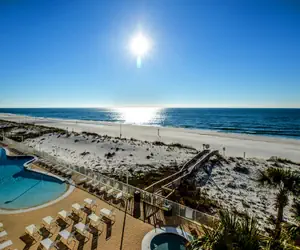 Nestled directly on the pristine, white sand beaches of Gulf Shores, this unit boasts stunning panoramic views of the shimmering Gulf waters. Enjoy morning sunrises and evening sunsets from your expansive private balcony, where the gentle ocean breeze invites relaxation and rejuvenation.