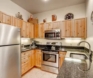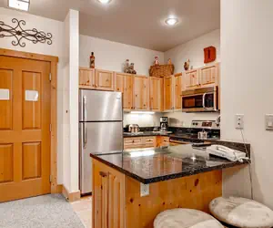 This studio condo provides everything you need for your next ski getaway! This unit sleeps up to 4 guests with a queen Murphy bed and queen sofa bed. The modern kitchen is fully equipped with refrigerator, oven, microwave and dishwasher, and utensils so you can prepare and enjoy home cooked meals during your stay. The living space features a flat screen TV, fireplace, dining table, sleeping accommodations, and access to private deck.