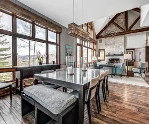 This private five-bedroom Horizon Pass Townhome features ski-in, ski-out access, majestic views of Bachelor Gulch and the Gore Range, is adjacent to hiking trails, and has recently been fully renovated.