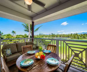 The complex is located in the best area of the entire Waikoloa Beach Resort, in walking distances to the King Shops, the A Bay Beach, and the Queens Marketplace. You can walk to Starbuck's in the morning, go to the beach in the afternoon, or take an evening stroll to one of the many fine restaurants or under the stars from our villa. The villa is located on the top floor in the best and most private area of the Waikoloa Beach Villas complex, right on the golf course with spectacular views of the lakes, the golf course, the Kohala mountains, Mauna Kea and the Island of Maui.