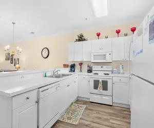 This professionally decorated villa has over 1,050 square feet plus an awesome screened and furnished porch that will be enjoyed by everyone in your group. The great room features ample seating, a wide plasma screen TV, DVD, and wireless Internet. Bring your laptop and stay connected! The open floor plan makes this villa perfect for vacationers who enjoy space and conversations!
