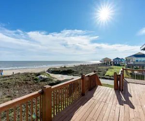 Formerly known as Highview Lodge, this beautifully remodeled and updated beachfront retreat offers the perfect blend of coastal charm and modern comfort. Nestled in the serene community of Caplen, Royal View boasts breathtaking panoramic Gulf views, stylish interiors, and a spacious layout designed for relaxation.