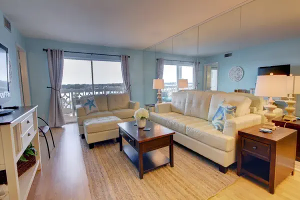 Just Renovated in 2021! This unit combines soothing neutrals and with touches of sea blues and greens to awaken the senses and renew your spirit! Enjoy plenty of seating and elbow room in this two bedroom, two bathroom condo at the beach.