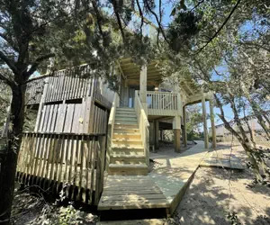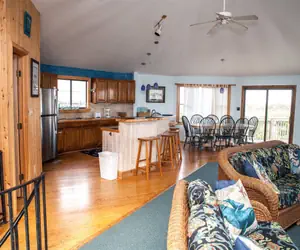 Dune Rose is a round cottage with a classic design, situated close to the beach. Relax on the spacious deck encircling this cottage, where you can take in the ocean and listen to the waves. Take pleasure in the sheltered porch connected to the bedroom on the lower level. Many beds available for the fishermen. 4 bunk beds for queens, 1 twin. Close to nearby shops and eateries. Dune Rose offers comfort and is situated in an excellent location, making it an ideal spot for a vacation. Every guest must bring towels, linens, and paper items. Dune Rose has been styled and equipped according to the preferences of the owners. A Coffee Maker, Microwave, Toaster, Pots and Pans, Dishes, Cutlery, Silverware, Glasses, Mattress Pads, Pillows, and Blankets or Comforter are included. Fees for reservation, partial stays, taxes, and insurance may be applicable.