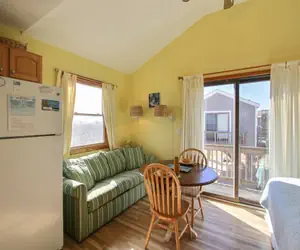 Hatteras Blew will blow you away! The beachy colors and nautical feel of the cabana will keep you smiling day after day! After you have a fun filled day at the beach, enjoy the serene setting of the beach just a short distance away as you have a cold beverage on the top deck. This cabana can accommodate a party of up to 4 guests! For your enjoyment, there is a Queen bed along with a sleep sofa. Hatteras Blew is just the ticket for a the perfect family get-a-way!