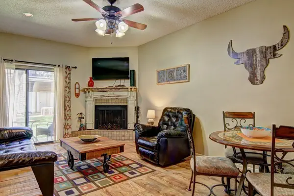 This cozy and stylish 2-bedroom, 1-bath condo comfortably accommodates up to 6 guests. The open living and dining area is perfect for relaxing after a fun day on the river, complete with a fireplace and flat-screen TV.