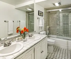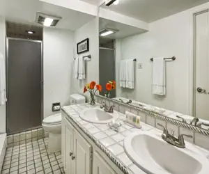 The main bedroom includes a king bed and an ensuite bathroom, while the guest bedroom offers two twin beds that can be converted to a king upon request and easy access to the second full bathroom. For your convenience, the apartment also includes an in-unit washer and dryer.