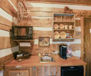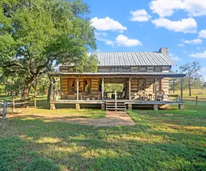 Our charming log cabin is built in the classic Southern “dogtrot” style, featuring sleeping quarters at each end connected by an open breezeway. Originally constructed on the banks of the Cumberland River in Cloyds Kentucky, The Dogtrot was relocated to the Texas Hill Country in 1997. For 10 consecutive years, it has been awarded “Outstanding Quality” by Historic Accommodations of Texas.