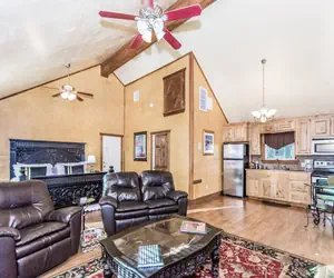 Relax on your private porch while watching white-tailed deer, sipping wine, or soaking in the hot tub as the sun sets over the rolling hills. Inside, the cottage offers a king-size bed, leather couch, oversized recliner, and a fireplace—everything you need for a cozy, intimate stay.