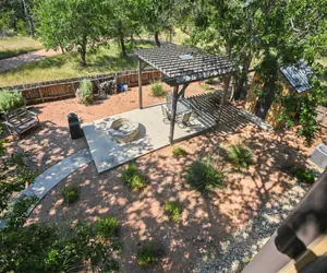 Escape the city and unwind at Far View Gasthaus, a charming two-bedroom retreat perched above the homeowner’s garage on 10 acres of beautiful Texas Hill Country. Enjoy breathtaking, panoramic views from nearly every room, relax on the porch, or sip wine by your private fire pit in the gated backyard.