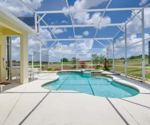 The Outside of the Home is truly lovely with a large pool that has beautiful panoramic views, just perfect for the days spent at home relaxing and enjoying a new book. There are sun loungers for you to soak up the lovely Florida sunshine and a covered Al Fresco Dining Area with a table and chairs for you to sample the delights of the outdoors or even something more exotic under the stars.
