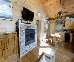 Escape to the serenity of the Great Smoky Mountains with a stay at Always Kiss Me Goodnight, a cozy retreat in the heart of Pigeon Forge, Tennessee! This charming cabin is perfect for couples or small families, accommodating up to 4 guests. As you step inside, you'll be greeted by the warm glow of the stone fireplace, or step outside and enjoy the soothing sounds of the nearby creek. The fully equipped kitchen has all the essentials, and the dining area provides a peaceful spot to enjoy your favorite meals. But it's not all about relaxation - with modern amenities like WiFi, you can stay connected with loved ones back home. You'll have access to various resort amenities, including a pool, hot tub, and fitness center. And with Pigeon Forge just minutes away, you're just a short drive from all the excitement and entertainment the town offers. Come nightfall, snuggle up by the fire pit on the private patio, and watch the stars twinkling above. Its cozy atmosphere and convenient location make it the perfect retreat for your next Smoky Mountain getaway. Book your stay today and create memories that will last a lifetime!