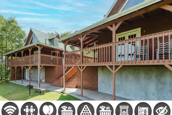 Escape to Sweet Cabins in Wears Valley, Tennessee, the perfect mountain retreat for large families, groups of friends, or corporate retreats! Nestled amidst mountain views, this spacious cabin duo features six beautiful bedrooms and six well-appointed bathrooms, comfortably accommodating up to 25 guests. This cabin duo retreat boasts two fully equipped kitchens for your culinary needs and modern amenities like Wi-Fi and flat-screen TVs throughout. Enjoy quality time on the covered decks or unwind in one of the two hot tubs. With fun-filled entertainment options, including foosball, an arcade game table, and two pool tables, Sweet Cabins guarantees a memorable getaway filled with laughter and relaxation. Fire up the charcoal grill for an outdoor barbeque feast, and create unforgettable memories around the two cozy fireplaces. Escape to Sweet Cabins for the ultimate retreat experience!