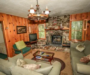 Enjoy fireside comfort in the traditional rock fireplace. Truly a mountain delight. Pet Friendly Property! Propane Gas Grill on Deck.