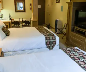 The studio includes a kitchenette with small refrigerator, counter space, microwave, coffee maker, pantry space, and breakfast counter. Enjoy this cozy mountain studio. Washer/dryer located on the 3rd floor in the building.