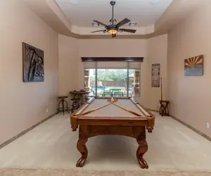 4 bedroom, 2.5 baths LARGE single family home in North Phoenix. Single story- No Stairs. PRIVACY! Large lot; sitting at over an acre! Sparkling *HEATED pool with waterfall and hot tub. Built in BBQ Island/bar/fridge outside. 2 King beds, 2 Twin Beds and a Queen bed provide comfortable and private areas of rest. The master offers a King bed w/ TV, large attached bath and huge walk-in closet. The 2nd bedroom has a King bed and TV. The 3rd bedroom has 2 twin beds and a TV, and the 4th bedroom has a queen bed. An ADDITIONAL pull-out couch in the living room can accommodate 9-10 comfortably! A Pack n' Play is also available for use upon request.