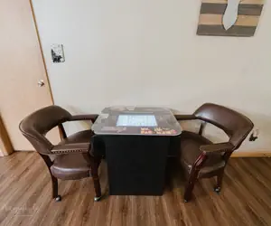 Cozy up in the comfortable living room, where plush furnishings and modern amenities come together in perfect harmony. This room is centered around the gas fireplace for cozy evenings and a large flat-screen TV, perfect for movie nights or catching up on your favorite shows. Sink into the oversized recliner for the ultimate in relaxation. On the other side of the recliner, an armchair beckons you to curl up with a good book or take a nap. And when it's time to rest, the sofa sleeper converts into a comfortable queen-sized bed, ensuring there's always a spot for everyone.