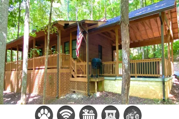This cabin is easy to access by motorcycle or vehicle. There is level parking for four cars. You will find a Dollar General, Kroger, or a Food City nearby. Just 5 minutes from the Smoky Mountains, 15 minutes from Pigeon Forge, and 15 minutes from Gatlinburg. With such a great location, you're just a short drive from everything downtown Pigeon Forge has to offer.