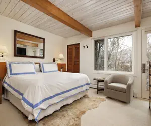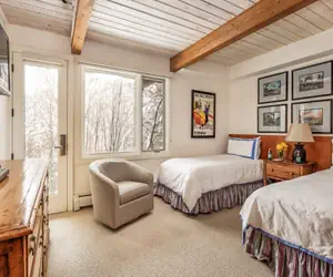 On the lower level the primary bedroom includes a king bed and ensuite bathroom, while the guest bedroom offers two twin beds that can be converted to a king upon request and a private ensuite as well, ensuring privacy and comfort for all guests. The condominium is also fully air-conditioned, a rare and welcome feature during Aspen’s summer months.