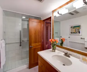 On the lower level, you’ll find two additional bedrooms—one with a king bed and the other with two twin beds—each featuring its own ensuite bathroom for maximum privacy and convenience.