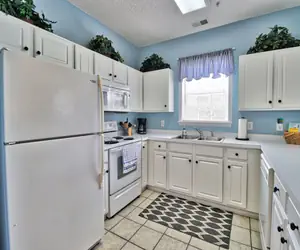 The amenities we offer are unsurpassed since we furnish everything you need to enjoy a great vacation here in paradise. The fully equipped kitchen is perfect for preparing meals or just a quick breakfast and coffee to start your day. A convenient pass through to the dining room will make serving your meals a pleasure.