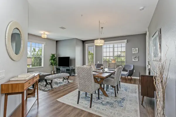 Unwind in the expansive, newly furnished living area, featuring a modern two-piece sectional sofa, a 60-inch smart HDTV, and free wireless internet throughout. The stylish dining room includes a table seating 8, complemented by four bar stools at the kitchen bar—perfect for group meals or casual gatherings.
