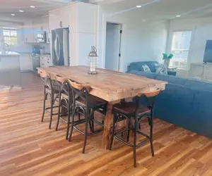 Inside, the spacious living and dining areas are designed for comfort and togetherness, making it easy to gather for meals, games, or simply enjoying the views. Outside, expansive decks with rocking chairs offer both ocean and marsh views, creating the perfect setting to unwind and soak in the coastal breeze. Additional amenities include a private swimming pool, high-speed Wi-Fi, gas grill, and an enclosed outdoor shower—everything you need for a memorable beach vacation.