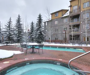 Expedition Station is an amenity rich building. Inside on the the lobby level you’ll find a massive, beautiful stone fireplace setting with cozy seating arrangements. There is an adjacent entertainment alcove with large wall-mounted, flat-screen TV and a handsomely rugged billiards table for all to enjoy. Relax in the year-round outdoor heated swimming pool and hot tub just outside the main lobby. Steps down the hall you’ll have key-card access to a plentiful exercise room, with weight and cardio machines, as well as the adjacent steam room. You’ll also have a private ski-locker just steps from the front door of the building, a heated, underground parking garage, and on site laundry facilities. Directly out the front doors of Expedition Station is Dercum Square’s quaint outdoor skating rink (mini-golf in the summer-time), and of course you’re just a 2-3 minute walk to all of the inner-village activities, shopping and dining of River Run Village and the River Run Gondola.
