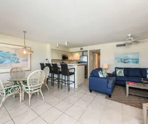 Exceptional gulf views await you in this 2 bedroom, 2 bath beach front unit. The unit is comfortably furnished and features a spacious open porch, heated pool, and covered parking. You'll have access to cable, phone, VCR, dishwasher, microwave, washer & dryer, and internet.